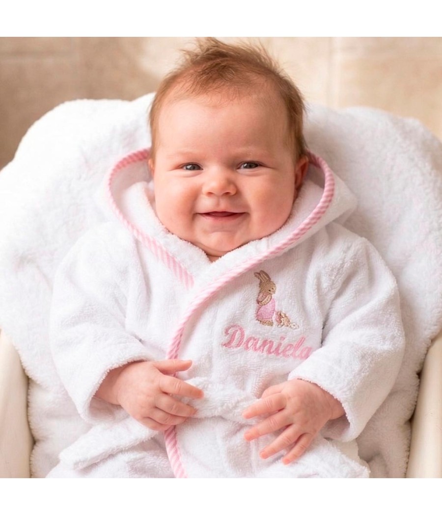 ¡Recuerda que podemos bordar el nombre del bebé en el albornoz en el momento!