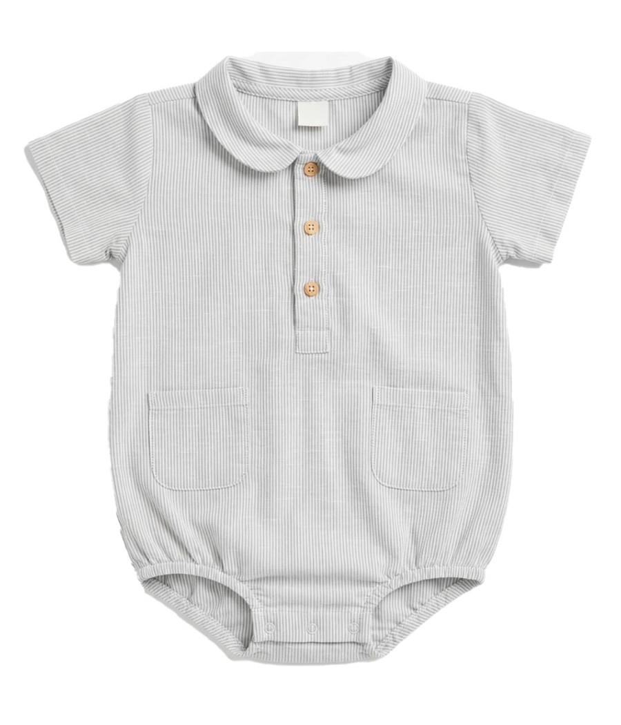 - Pelele de hilo con mangas y cuello con botones de madera (talla 1-6 meses)