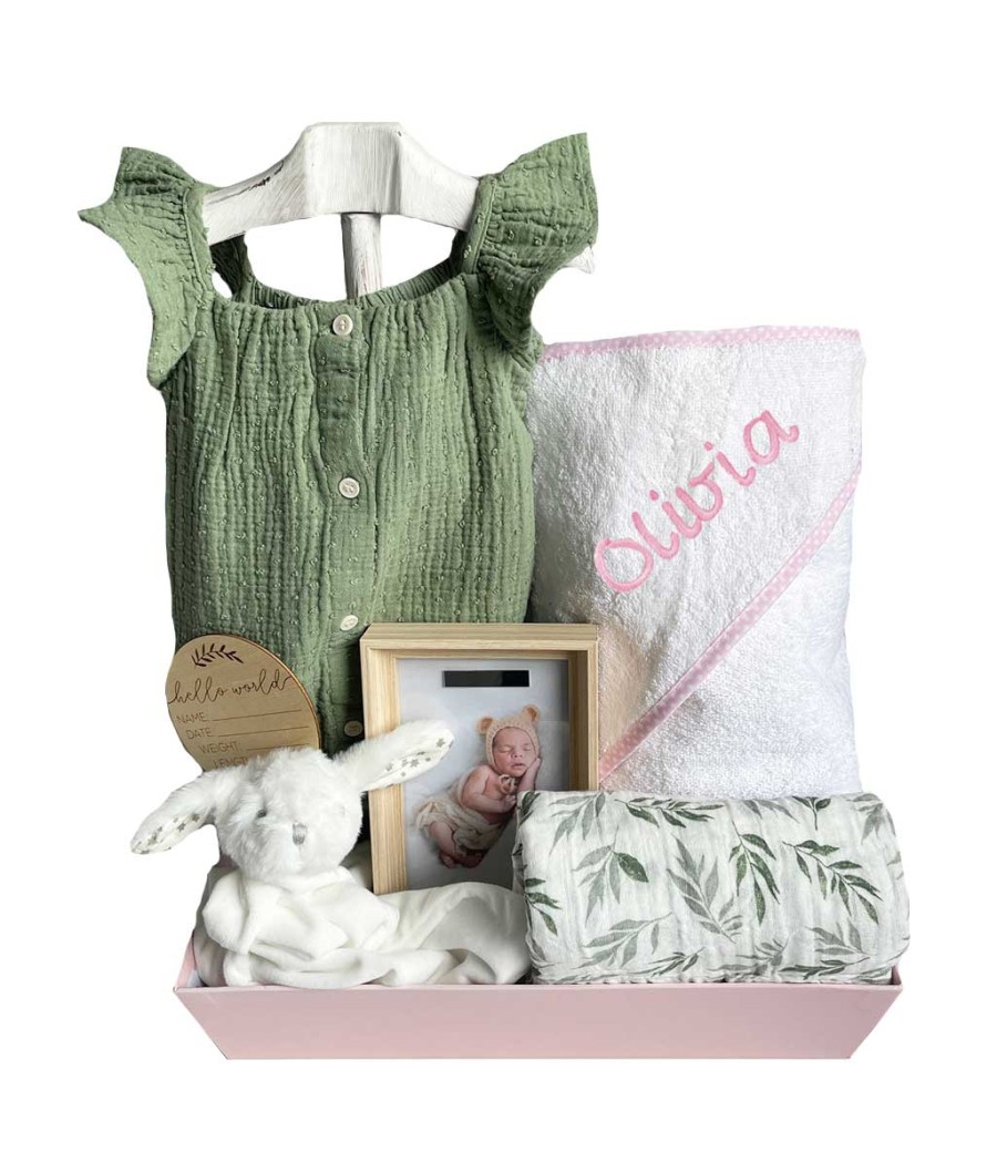 Regalos originales para recién nacidos. Canastilla bebé con ropita de bebé para primavera verano con accesorios divertidos. Puedes bordar si quieres la capa de baño y el doudou con el nombre del bebé. No retrasa la entrega del regalo.