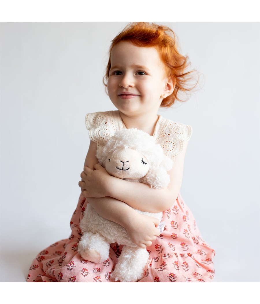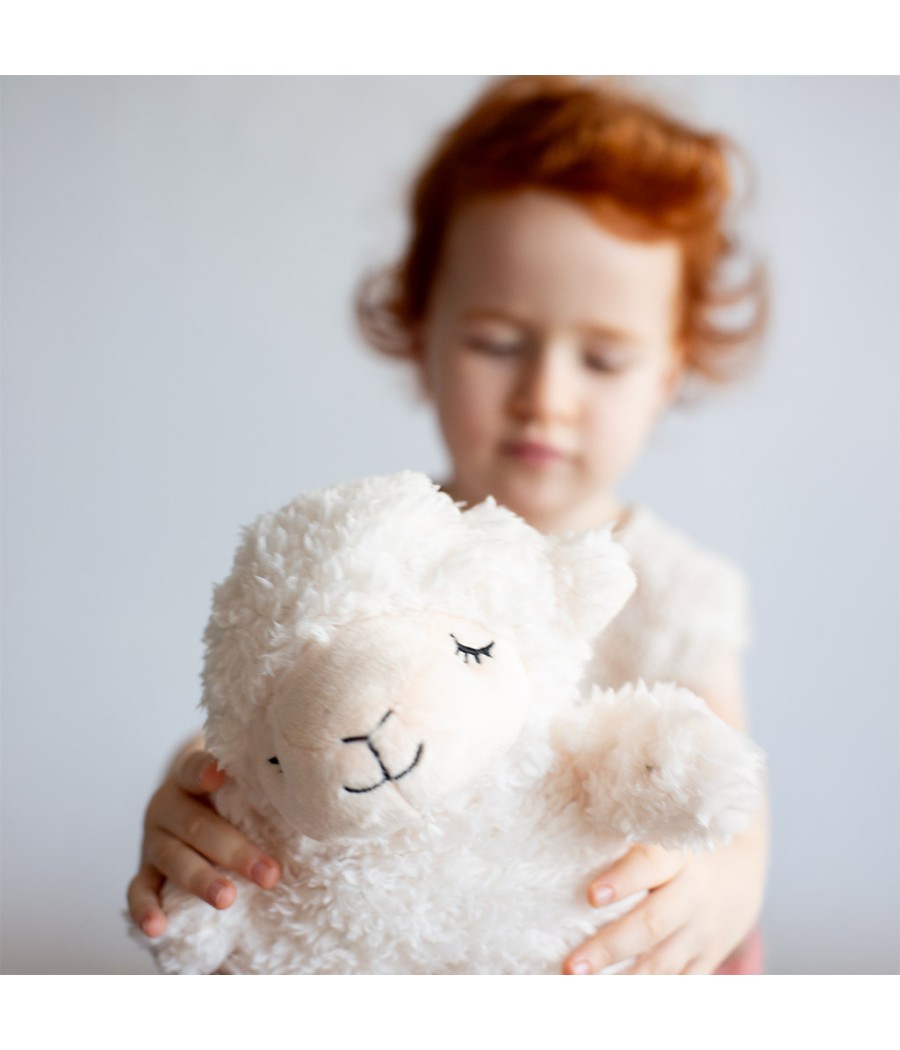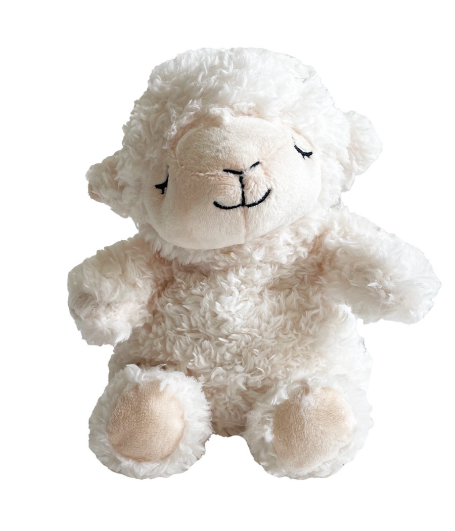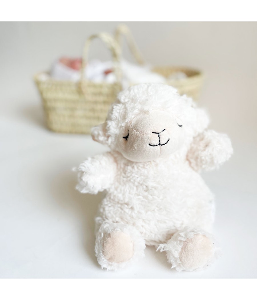 Peluche térmico en forma de ovejita. Con almohadilla interior de semillas para meter en el microondas y calentar. Muy práctico para los días fríos y calentar la cuna del bebé o simplemente para reconfortar.