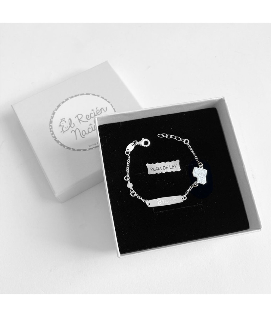 Esclava de plata de ley para grabar con el nombre del bebé. Un regalo ideal para un bautizo o un nacimiento. El nombre se graba a mano en letra infantil, NO se graba a máquina.